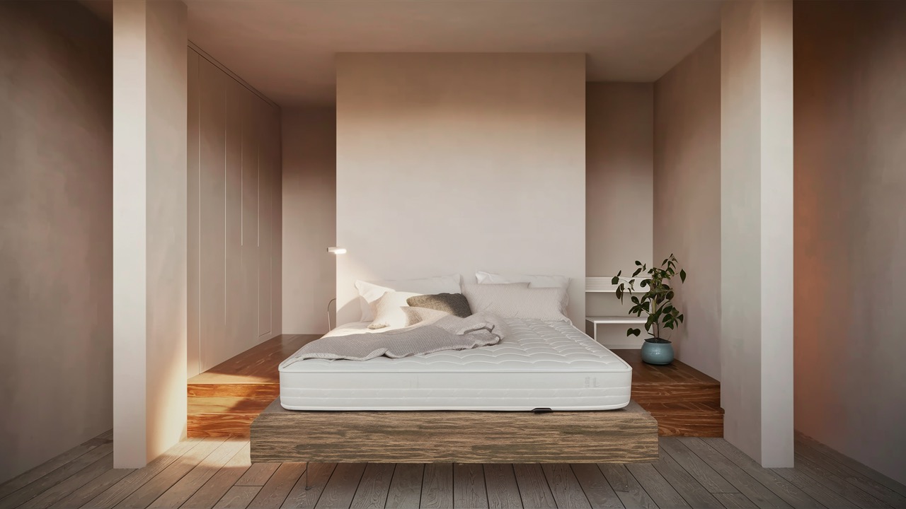 Styl zen, wykorzystujący beż i ciepłe drewno z ukrytym oświetleniem LED. Powierzchnia: 14 m².